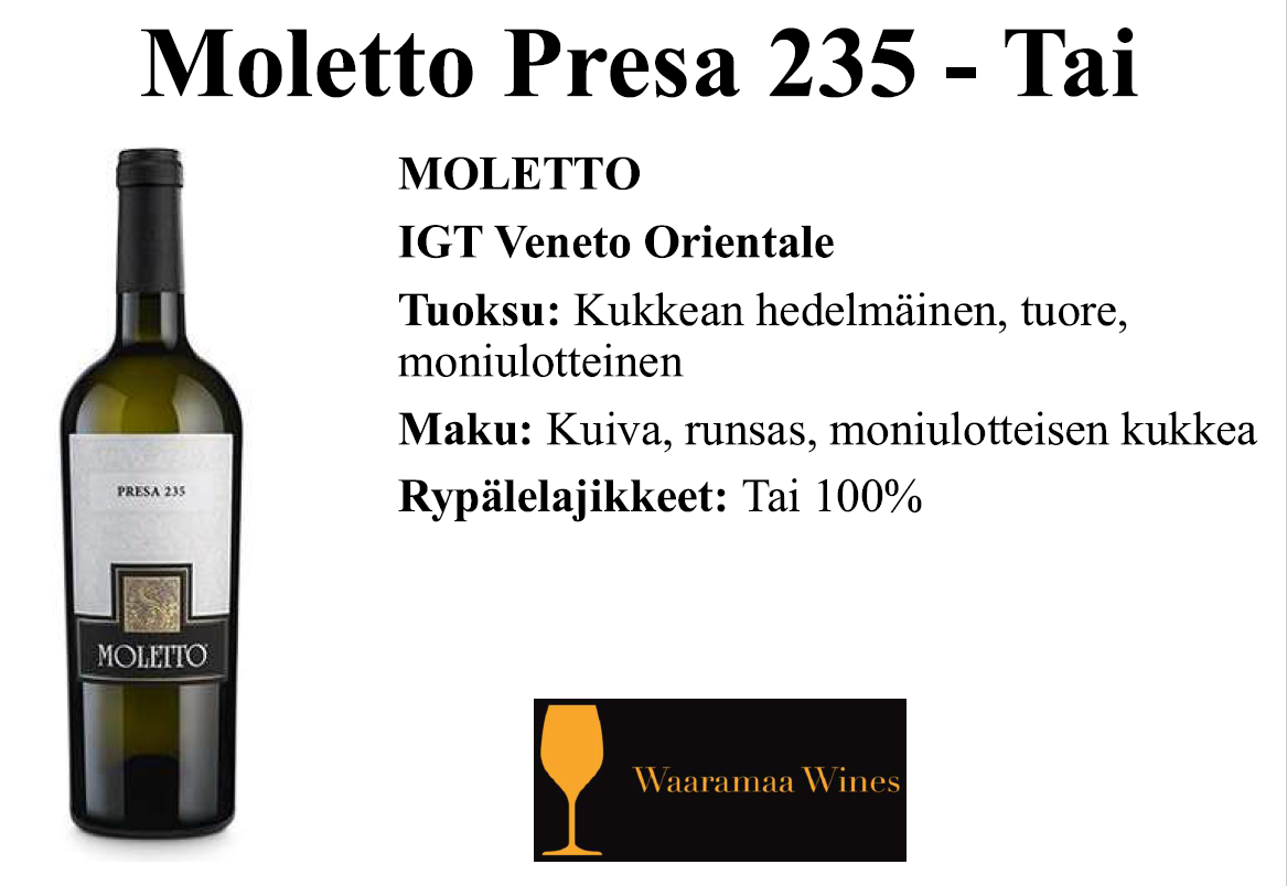 Moletton viinitilalla, Itäisen Veneton alueella Mottan perhe viljeli viiniköynnöksiä jo 1400- luvulla. Uudempi tilanomistaja, Stivalin perhe on kehittänyt tilalla 1960-luvulta lähtien laatuviinien valmistusta ja luonut perheyrityksestä yhden palkituimmista ja arvostetuimmista Veneton alueen viinituottajista.